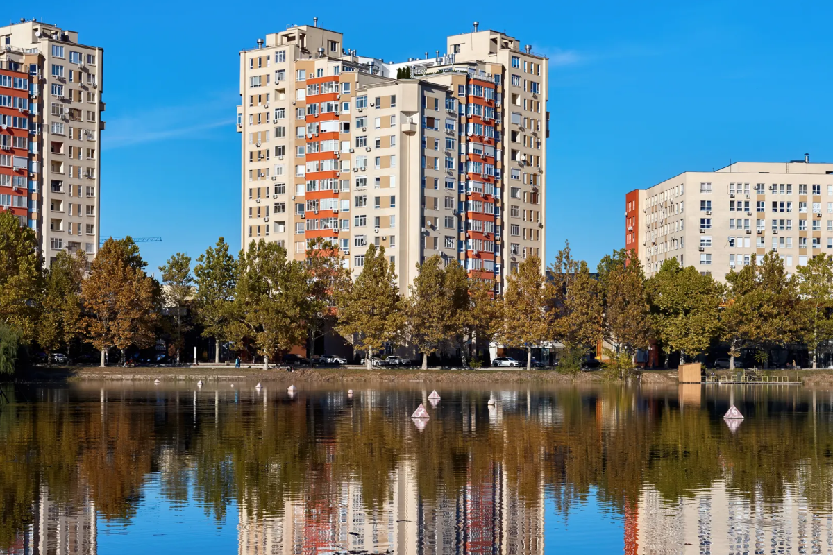 “A condo in a high-rise building next to a lake and a public park. The unit has large windows, a simple layout, and enough space for a small dining area. The building offers access to outdoor paths along the water, and there are several shops and transit options nearby. Parking is available around the complex, and the area stays active during the day because of the park and the residential buildings around it.”