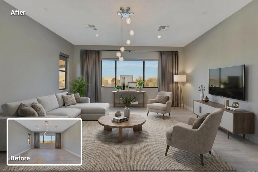 - Virtual Staging AI: Creates staged room variations that help buyers understand how a space can be used.